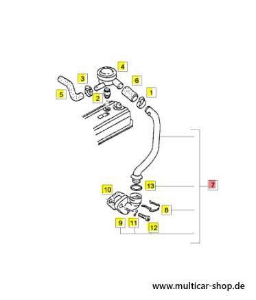 Multicar M25.1 VW-Motor M26.0 M26.1 Entlüftungsrohr für Zylinderkopfentlüftung